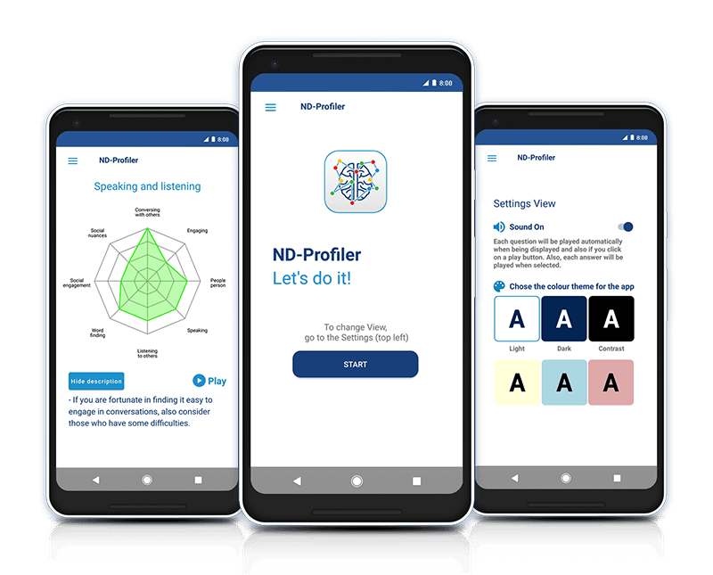 The launch of ND-App into the tech-for-good space disrupts the profile screening market with the first app of its kind. The app uses technology determined by 20 years intelligence gathering working with a wide range of employers and employees. It has been developed in recognition of the lack of support for challenges relating to neurodiversity. Historically, assessments have tended to diagnose isolated conditions and can be inaccessible or prohibitively expensive for many. ND-App adopts a whole-person approach giving individuals a better understanding of themselves. This can lead the way to the first steps to support bridging the gap between a full assessment or nothing at all.